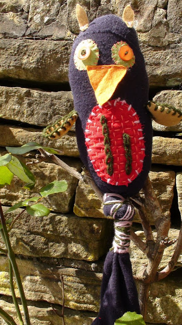 Just completed 3 lovely new sock owls with vintage buttons and wrapped tails. Will be added to my etsy shop in the next day or so.